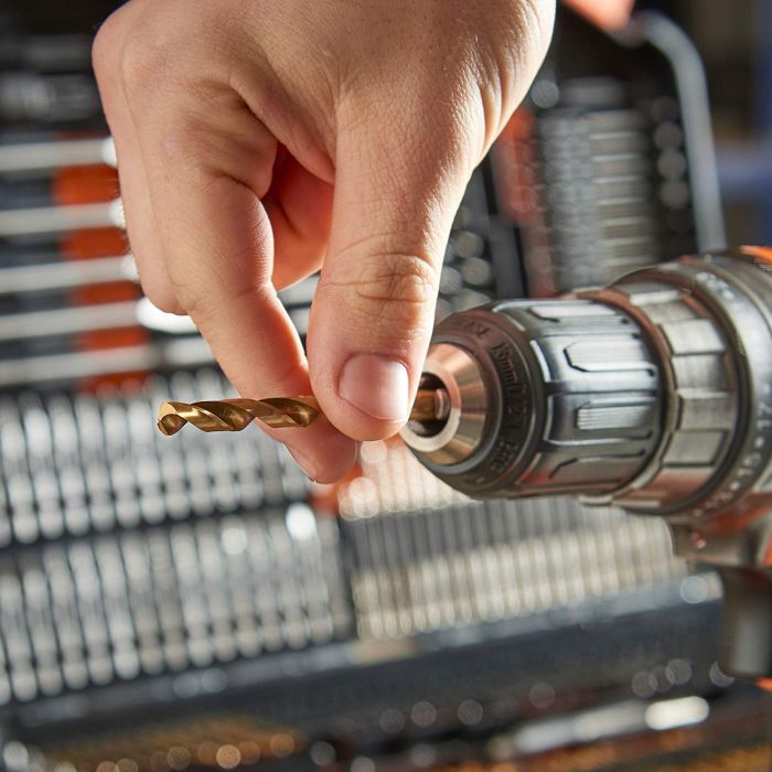 - Komplet vsebuje: 87 x vrtalni svedri HSS, 22 x svedri za les, 21 x svedri za zidovje, 4 X svedri 66 x 25 mm bitov, 30 x 50 mm bitov, 6 X navojnih gonil, 2 X hex ključi, 1 X korito , 4 vrtalne žage X, 1 X adapter za vrtanje, 1 X Nail puncher in 1 X držalo